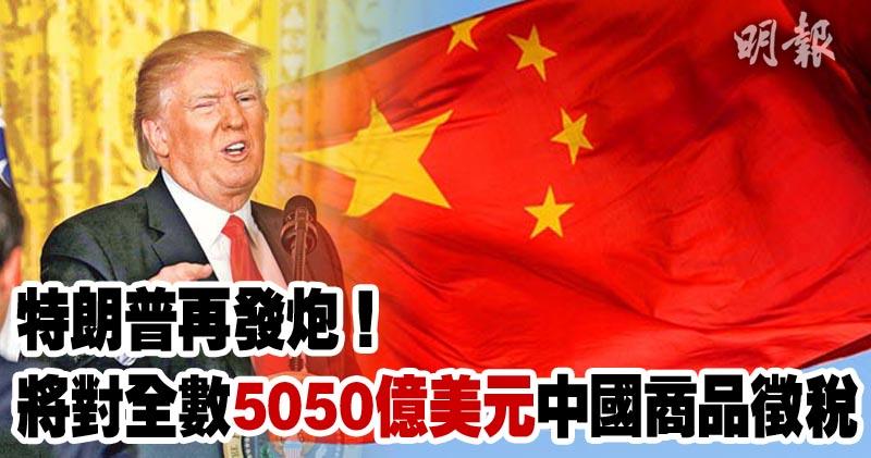 報道指出,特朗普將對中國全數入口商品開徵關稅,相當於5050億美元,有關數字是參考美國人口普查局,於2017年接受中國進口美元金額5055億美元,而美國出口到中國的金額則為1299億美元。